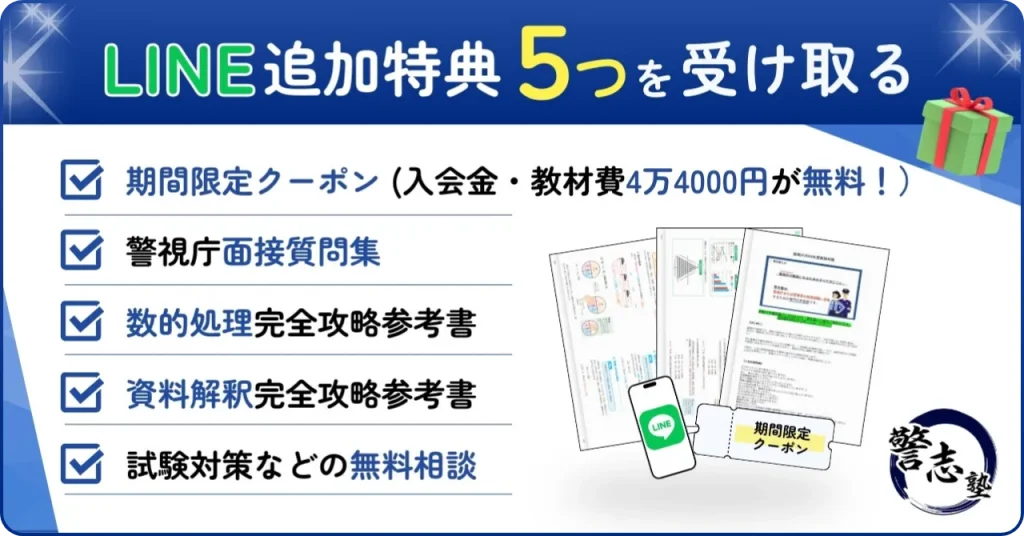 予備校の中でも、警視庁合格に特化した「警志塾」がおすすめです。警志塾の講師は元警視庁職員であり、経験をもとにした具体的なアドバイスを受けられます。